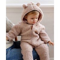 Light pink fleece onsie with small ears on the hood, and a convenient front zipper. The fleece onsie provides warmth and insulation, and it can be worn on its own or as an extra layer under the snowsuit on the coldest days. This style comes with feet from size 56-74 and without feet from size 80-92.