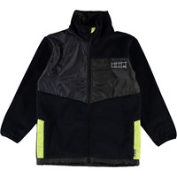Urbain is Molo's cool new fleece jacket in dark blue with neon green details and panels with a shiny surface on the front and back. The jacket has a zip closure and zip pockets. Wear the jacket with the matching fleece trousers.