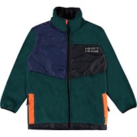 Urbain is Molo's cool new fleece jacket in dark green with neon orange details and panels with a shiny surface on the front and back. The jacket has a zip closure and zip pockets.