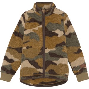 Urban is a brown fleece jacket with a camouflage print. The jacket has a high collar, a front zip closure and rib at the sleeves. The fleece jacket can be used alone or as an extra layer under another jacket on really cold days.