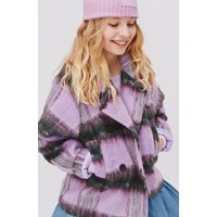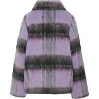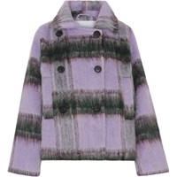 Helle is a small, plaid, short jacket in a wool blend. The jacket is double breasted with a button front closure.