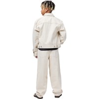 Off-white denim jacket made of cotton in a loose fit, with a shirt collar, button fastening at the front, side pockets, chest pockets, and adjustable snap buttons at the back. From size 92-134, the jacket is delivered with snap buttons, making it easier for children to fasten the jacket themselves. From size 140-176, the jacket is delivered with a regular button fastening.
