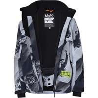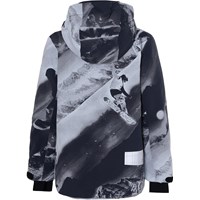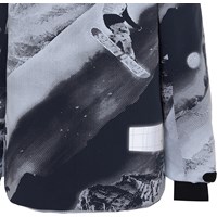 Alpine is a functional and waterproof ski jacket in a snowboard print in grey tones. It has a detachable hood, a front zip and large, roomy pockets at the sides. It has adjustable sleeve openings with a snug wind flap with thumb holes and a reflective stripe on the back. The jacket is constructed in a windproof and waterproof quality that is breathable. It is lined in 3M™ Thinsulate™ and has high quality fleece in vulnerable places as well as taped seams. This product has a water resistant, PFC-free surface treatment (Does not contain, e.g. PFOS, PFOA, etc). The water column pressure and breathability are improved and are now 15.000 mm for the water column pressure and breathability: 15.000 g/m2/24hrs.