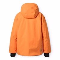 Wind and waterproof orange winter jacket made of recycled polyester. The jacket has a lined hood, waterproof zippers, a pocket on the sleeve for a ski pass and an interior pocket for extra storage. The jacket has a wind flap around the waist, velcro around the wrists, and sleeve openings with thumb holes, which keeps the snow, wind and water out. Additionally, the jacket is lined with fleece, padded with 3M™ Thinsulate™ and it has a reflective text to increse the visibility in traffic.