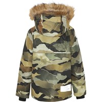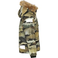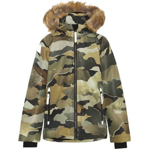 Castor is a lined, waterproof winter jacket in a camouflage print. Castor is perfect for extremely cold days but also ordinary winter days. The high level of breathability helps regulate a child's body temperature so it does not become too cold or over heated. On warmer winter days, a child can wear the jacket with a thin under layer, but on extremely cold days, you can add an extra layer underneath. Castor is also a good choice for less active moments. The jacket has a detachable faux furt rim on the hood, a covered zip closure, concealed pockets, visible reflectors on the side of the sleeves and on the back. The jacket is constructed in windproof, waterproof and breathable materials. The outer fabric is made from 45% recycled polyester, the 3M™ Thinsulate™ padding from 78% recycled polyester and the lining from 100% recycled polyester. This product has a water resistant, PFC-free surface treatment (Does not contain, e.g. PFOS, PFOA, etc). Water column pressure: 15.000 mm. Breathable: 15.000 g/m2/24hr.