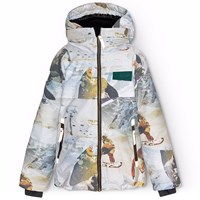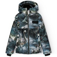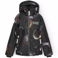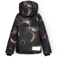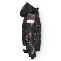 Wind- and waterproof winter jacket in recycled polyester for a cold winter with a print of planets and the beautiful lights of space. The jacket has a detachable lined hood and a zipper with flap to keep out snow, wind, and water. The jacket has several large reflectors to increase visibility in traffic. The jacket has lined zip pockets as well as an adjustable elastic at the bottom of the jacket to keep the warmth in and the wind out. The sleeves have ribbed cuffs, which effectively keep out wind, snow, and rain while ensuring that gloves stay in place. The jacket is lined with 3M™ Thinsulate™, which provides the child with greater mobility.