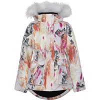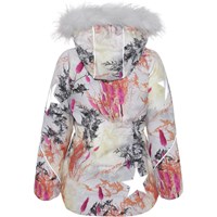 Cathy Fur is a waterproof winter jacket in blue with a print of colourful branches. It has a detachable hood with a detachable faux fur trim, a zipper down the front, roomy pockets, adjustable elastic waist and Molo's iconic star reflector on the back. The jacket is made in a windproof, waterproof and breathable fabric, while the lining and the interlining are recycled and made of recycled polyester. This product has a water resistant, PFC-free surface treatment (Does not contain, e.g. PFOS, PFOA, etc). Water column pressure: 15.000 mm. breathable: 15.000 g/m2/24hr. They have straps with velcro for braces that can be purchased.