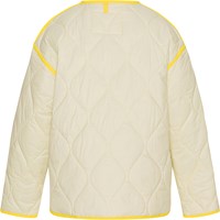 Hailee is a light yellow quilted jacket with yellow contrast edges. The jacket has a button front closure.