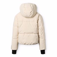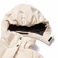 Wind and water-repellent off-white winter jacket in recycled polyester. The jacket has a detachable lined hood, practical zipper with flap, as well as waterproof zipper pockets. There is a pocket on the sleeve for a ski pass and an interior pocket for extra storage. The jacket has a wind flap at the waist and sleeve openings with thumb holes, which effectively keep out snow, wind, and water. Inside, the jacket is lined with recycled polyester fill, 3M™ Thinsulate™, which helps retain heat.