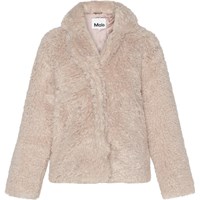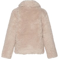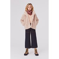 Harlyn is a rose coloured faux fur jacket in a short fit. It has a snap closure.