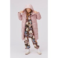 Harper is a warm, long coat in a rose colour. The jacket has a hood, zip pockets on the front and reflectors on the back. Harper is lined with technical down, called pearl padding, which makes it extra soft, retains heat and has a down-like feel. This product has a water-resistant, PFC-free surface treatment (Does not contain, e.g. PFOS, PFOA, etc). Water column pressure: 5.000 mm. Breathable: 5.000 g/m2/24hr.