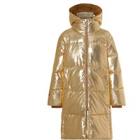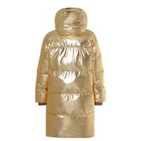 Harper is a lovely, warm coat in a lovely gold colour with a metallic effect that is constructed in 59% recycled nylon from plastic waste. It has a hood, pockets with zippers on the front and a reflector on the back. The coat is lined in pearl padding, which makes it extra soft and retains heat, while giving it a down-like feel.