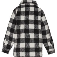 Plaid overshirt in black and white. It has a zip front and pockets at the sides. The overshirt is in a wool blend and is perfect for indoors on a cold day but can also be worn outdoors on milder days.