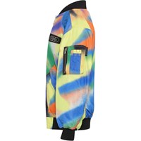 Heath is a multi-coloured bomber jacket with black rib at the neck, sleeves and waist. Heath has pockets with snaps and an extra zip pocket on the left arm.