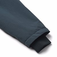 Wind and waterproof dark blue jacket in recycled nylon with practical zipper closure, high collar, and detachable lined hood. The jacket is designed with front pockets, a chest pocket with zipper, ribbed cuffs that effectively help against the wind. On the back, there is a large reflector that increases visibility in traffic. The jacket is lined with soft, recycled polyester filling, which provides a smooth comfort and optimal thermal insulation.