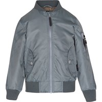 Chic pilot jacket in a bomber look with a zipper, side pockets and rib at the neck, sleeves and bottom. There is a cool zipper pocket, on one sleeve, with a patch.
