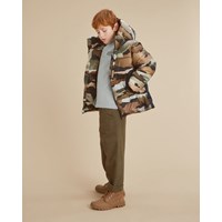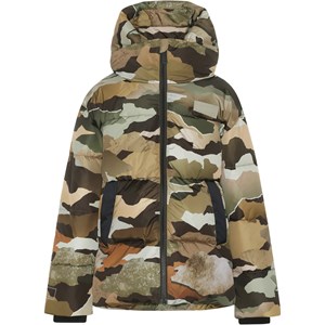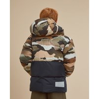 Hilo is a winter jacket in a camouflage print with a zip front closure. The jacket has a high collar and reflectors on the back. Hilo is lined with technical down, called pearl padding, which makes it extra soft, retains heat and has a down-like feel. This product has a water-resistant, PFC-free surface treatment (Does not contain, e.g. PFOS, PFOA, etc). Water column pressure: 5.000 mm. Breathable: 5.000 g/m2/24hr.
