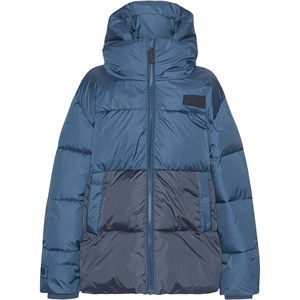 Soft, warm down jacket with a hood. The jacket is a part of Molo’s 'Everyday Exploration’. It's outerwear for everyday adventures that is special because of its amazing details and colourful prints. The jacket is, of course, also responsibly produced in recycled materials, ensuring it lives up to Molo’s high standards for outerwear. This Hilo is in two shades of blue.