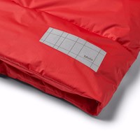 Red puffer jacket in recycled polyester for a cold winter. The jacket has a detachable hood, side pockets and sleeves with ribbed cuffs, which effectively keep out wind, snow, and rain while ensuring that gloves stay in place. The jacket has a large reflector at the back to increasd visibility in traffic.