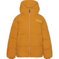 Hilo is a practical winter jacket, in a golden mustard colour, that is constructed in 59% recycled nylon from waste. It has pockets with a zipper and a reflector on the back. The jacket is lined in pearl padding, which makes it extra soft and retains heat, while giving it a down-like feel. The outer fabric has a water resistant, PFC-free surface treatment (Does not contain, e.g. PFOS, PFOA, etc).