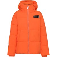 Hilo is a practical winter jacket, in a beautiful orange colour, that is constructed in 59% recycled nylon from waste. It has pockets with a zipper and a reflector on the back. The jacket is lined in pearl padding, which makes it extra soft and retains heat, while giving it a down-like feel. The outer fabric has a water resistant, PFC-free surface treatment (Does not contain, e.g. PFOS, PFOA, etc).