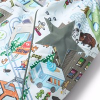 Wind and waterproof winter jacket made of recycled polyester with a pixelated print of the real world, fun characters from Molo's collections, and a lot of exciting stories that are fun to explore in the colorful universe. The jacket has a detachable, a lined hood, two zippers on the front with internal flaps, and a ribbed edge as a chin guard to prevent the skin from getting caught. The jacket has reflective bands on the sleeves, back, and hood, as well as two reflective stars to ensure visibility in traffic. The sleeves have an elastic cuff that keeps wind, snow, and rain out and keeps the gloves in place. Additionally, the jacket is lined with recycled polyester fleece, 3M™ Thinsulate™, which helps to keep the heat.