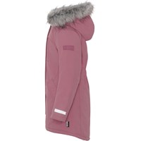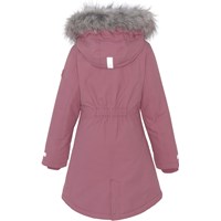 Peace is a functional, waterproof parka winter jacket in a rose colour. Peace is perfect for extremely cold days but also ordinary winter days. The high level of breathability helps regulate a child's body temperature so it does not become too cold or over heated. On warmer winter days, a child can wear the jacket with a thin under layer, but on extremely cold days, you can add an extra layer underneath. Peace is also a good choice for less active moments. The jacket has a detachable hood with a faux fur trim (also detachable), a covered zip closure, adjustable sleeve openings with storm flaps and three front pockets. It has elastic in the back for a more fitted look. The jacket is windproof, waterproof, breathable and has taped seams. The outer fabric is made from 59% recycled nylon, the 3M™ Thinsulate™ padding from 78% recycled polyester and the lining from 100% recycled polyester. This product has a water resistant, PFC-free surface treatment (Does not contain, e.g. PFOS, PFOA, etc). Water column pressure: 15.000 mm. Breathable: 15.000 g/m2/24hr.