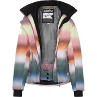Pearson is a functional and waterproof ski jacket in a pastel coloured rainbow print. Pearson is perfect for extremely cold days but also ordinary winter days. The high level of breathability helps regulate a child's body temperature so it does not become too cold or over heated. On warmer winter days, a child can wear the jacket with a thin under layer, but on extremely cold days, you can add an extra layer underneath. Pearson is also a good choice for less active moments. Pearson has a detachable hood, a front zipper with an asymmetric placket, side pockets and adjustable sleeve openings with a snug wind flap with thumb holes. It has reflective stripes on the sleeves. The jacket is constructed in windproof, waterproof and breathable materials with taped seams. The outer fabric is made from 45% recycled polyester, the 3M™ Thinsulate™ padding from 83% recycled polyester and the lining from 100% recycled polyester. This product has a water resistant, PFC-free surface treatment (Does not contain, e.g. PFOS, PFOA, etc). Water column pressure: 15.000 mm. Breathable: 15.000 g/m2/24hr.