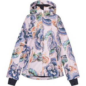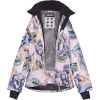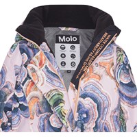Pearson is a winter jacket in a class of its own. It's a perfect jacket for ski trip. It has many features, like extremely high-water column pressure and breathability, and with its beautiful prints and colours, Peace is a sure winner every year. Molo doesn't compromise on any details when it comes to this winter jacket. It is, of course, also produced in responsibly recycled materials. This Pearson is in pink with a print of beautiful mushrooms that look like flowers.