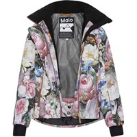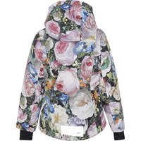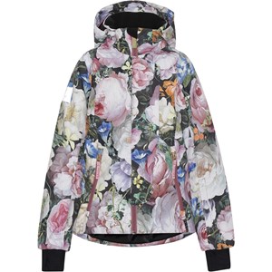 Pearson is a functionl and waterproof ski jacket in a floral print. Pearson is perfect for extremely cold days but also ordinary winter days. The high level of breathability helps regulate a child's body temperature so it does not become too cold or over heated. On warmer winter days, a child can wear the jacket with a thin under layer, but on extremely cold days, you can add an extra layer underneath. Pearson is also a good choice for less active moments. Pearson has a detachable hood, a front zipper with an asymmetric placket, side pockets and adjustable sleeve openings with a snug wind flap with thumb holes. It has reflective stripes on the sleeves. The jacket is constructed in windproof, waterproof and breathable materials with taped seams. The outer fabric is made from 45% recycled polyester, the 3M™ Thinsulate™ padding from 83% recycled polyester and the lining from 100% recycled polyester. This product has a water resistant, PFC-free surface treatment (Does not contain, e.g. PFOS, PFOA, etc). Water column pressure: 15.000 mm. Breathable: 15.000 g/m2/24hr.