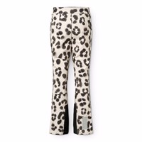 Wind and water-repellent softshell trousers made of recycled polyester with a unique leopard print. The trousers have internal fleece lining and a zip and button closure at the waist that can be adjusted with an internal elastic. The trousers have adjustable leg openings with snow gaiters and extra reinforcement between the legs. The trousers have a slim fit with a slight flare in the legs, as well as reflectors down the sides and a large reflector at the back to increase the visibility in traffic.