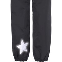 Windproof and waterproof pull on trousers with an adjustable, elastic waist, adjustable stirrups and Molo's iconic star reflector on the back for increased visibility at a distance in the dark. The trousers are also lined in a flat padding, which makes them soft and warm. These trousers are good all-around trousers for cold periods. This product has a water resistant, PFC-free surface treatment (Does not contain, e.g. PFOS, PFOA, etc). Water column pressure: 8.000 mm. Breathable: 5.000 g/m2/24hr.
