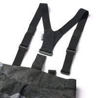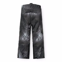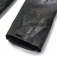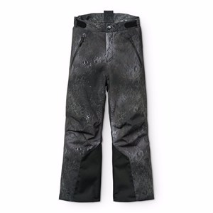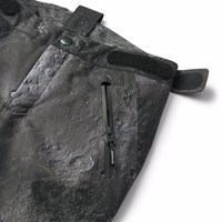 Wind and waterproof ski pants made of recycled polyester with a reflective print of the moon’s surface textures that lights up when hit by light. The ski pants have a snap button and zipper closure, external adjustable Velcro straps, belt loops for Molos braces (additional accessory), adjustable leg openings with snow gaiters and extra reinforcement between the legs. The ski pants have waterproof pockets and a reflective text on the back to increase the visibility in traffic. Additionally, the ski pants are lined with fleece in exposed areas and padded with 3M™ Thinsulate™.