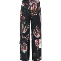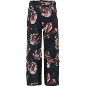 Jump Pro is a pair of functional, waterproof pull on trousers in black with a tulip print. Jump Pro are particularly well suited as ski trousers because they are very durable. Because they are breathable and insulated, Jump Pro trousers are perfect for extremely cold days but also ordinary winter days. The high level of breathability helps regulate a child's body temperature so they do not become too cold or over heated. On warmer winter days, a child can wear the trousers with a thin under layer, but on extremely cold days, you can add an extra layer underneath. Jump Pro is also a good choice for less active moments. The outer fabric is made from 45% recycled polyester, the 3M™ Thinsulate™ padding from 83% recycled polyester and the lining from 100% recycled polyester. The trousers have a snap and zip closure at the waist, side pockets, adjustable leg openings with snow flaps and extra reinforcement at the inner legs. The trousers are constructed in waterproof, windproof and breathable materials. This product has a water resistant, PFC-free surface treatment (Does not contain, e.g. PFOS, PFOA, etc). Water column pressure: 15.000 mm. Breathable: 15.000 g/m2/24hr. The ski trousers have velcro braces that can be purchased separately.