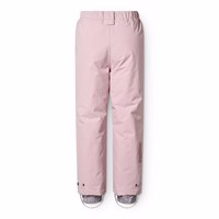 Pink wind and waterproof trousers made of recycled nylon. The trousers have elastic around the waist as well as an internally adjustable elastic, belt loops for Molos braces (extra accessory), and adjustable leg openings with snow gaiters. The trousers have a large reflector on the back that increase the visibility in traffic.