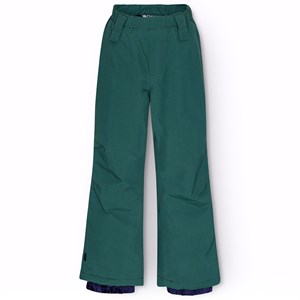Wind- and waterproof snow pants in dark green made from from nylon. The snow pants have an elasticated waistband and an adjustable internal elastic, belt loops for Molos braces (extra accessory), and leg openings with snow gaiters. There is also a large reflector on the back to increase visibility in traffic.