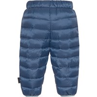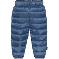 Dark blue puffer down trousers for smaller children. The trousers are in a roomy fit and has an elastic waist, and snug leg openings. They are padded with imitated down filling called Pearl Padding, which provides consistent softness, retains heat well, and makes washing easier.