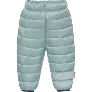 Light blue puffer down trousers for smaller children. The trousers are in a roomy fit and has an elastic waist, and snug leg openings. They are padded with imitated down filling called Pearl Padding, which provides consistent softness, retains heat well, and makes washing easier.