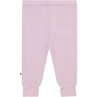 Purple pants for smaller children in soft fleece made from 100% merino wool. The pants are highly suitable as outerwear when taking a walk in the stroller during the cold autumn and winter month or indoors when children play and tumble on the floor. They have a roomy fit with elastic at the waist and snug ribbed cuffs with folded edges at the legs.