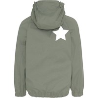 Waiton is a lightweight, functional rain jacket in the colour 'Skate', which is a beautiful grey/green colour. Waiton has a covered zipper that protects against the elements. It has taped seams, detachable hood and two front pockets. The jacket has Molo's iconic star reflector on the back to make it more visible in the dark. This product has a water resistant, PFC-free surface treatment (Does not contain, e.g. PFOS, PFOA, etc). Water column pressure: 5.000 mm. breathable: 5.000 g/m2/24hr.