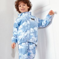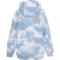 Waiton is a lightweight and functional rain jacket with a nylon lining in a light blue sky print. Waiton has a covered zip closure, which protects against the wind and rain. It has taped seams, a detachable hood and two front pockets. The jacket has Molo's iconic star reflector on the back, which makes it extra visible in the dark. This product has a huge advantage in that it is breathable, so a high activity level won't make the jacket wet on the inside. This product has a water resistant, PFC-free surface treatment (Does not contain, e.g. PF OS, PFOA, etc). Water column pressure: 5.000 mm. Breathable: 5.000 g/m2/24hrs.