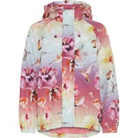 Waiton is a lightweight, functional rain jacket with an all-over print of flowers and hummingbirds in beautiful colours. Waiton has a covered zipper that protects against the elements. It has taped seams, detachable hood and two front pockets. The jacket has Molo's iconic star reflector on the back to make it more visible in the dark. This product has a water resistant, PFC-free surface treatment (Does not contain, e.g. PFOS, PFOA, etc). Water column pressure: 5.000 mm. breathable: 5.000 g/m2/24hr.