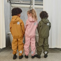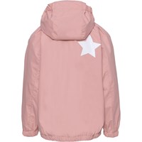 Waiton is a lightweight, functional rain jacket in rose with a nylon lining. Waiton has a covered zipper to protect against wind and rain, taped seams and a detachable hood and two front pockets. The jacket has molo's iconic star reflectors on the back for increased visibility in the dark. This product has a water resistant, PFC-free surface treatment (Does not contain, e.g. PFOS, PFOA, etc). Water column pressure: 5.000 mm. breathable: 5.000 g/m2/24hr.