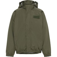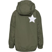 Waiton is a lightweight, functional rain jacket in khaki green with a nylon lining. Waiton has a covered zipper to protect against wind and rain, taped seams and a detachable hood and two front pockets. The jacket has molo's iconic star reflectors on the back for increased visibility in the dark. This product has a water resistant, PFC-free surface treatment (Does not contain, e.g. PFOS, PFOA, etc). Water column pressure: 5.000 mm. breathable: 5.000 g/m2/24hr.
