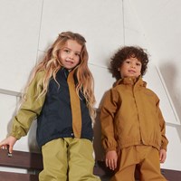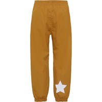 Waits is a pair of lightweight and funtional rain trousers in golden yellow. They have taped seams, adjustable elastic at the legs and waist and Molo's iconic star reflector on one leg. This rainwear has a huge advantage in that it is breathable, so a high activity level won't make the trousers wet inside. This product has a water resistant, PFC-free surface treatment (Does not contain, e.g. PF OS, PFOA, etc). Water column pressure: 5.000 mm. breathable: 5.000 g/m2/24hr.