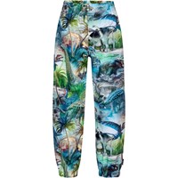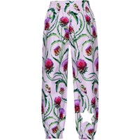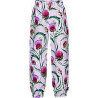 Pink rain trousers in an all over print of blooming artichoke flowers. The rain trousers are constructed in a lightweight, breathable quality that prevents condensation and moisture from forming on the inside of the trousers, even during high levels of activity. The rain trousers have an adjustable elastic waist and elastic at the legs. One of the trouser legs has a large star reflector on the back to make the child more visible in traffic. All the seams are taped to prevent water leaking in from the outside. Water column pressure: 5.000 mm. Breathability: 5.000 g/m2/24hrs.