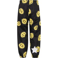 Waits is a lightweight and functional pair of rain trousers in black with a smiley face print. The trousers have taped seams, adjustable elastic at the waist and ankles and Molo's iconic star reflector on one leg. This product has a huge advantage in that it is breathable, so a high activity level won't make the trousers wet on the inside. This product has a water resistant, PFC-free surface treatment (Does not contain, e.g. PF OS, PFOA, etc). Water column pressure: 5.000 mm. Breathable: 5.000 g/m2/24hrs.