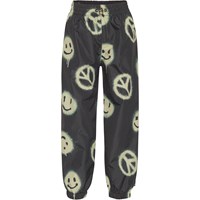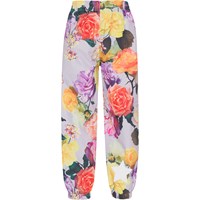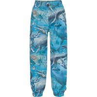 Waits is a pair of lightweight, functional rain trousers in light purple with a large floral print. They have taped seams, elastic at the legs and waist, which can be adjusted. The trousers have Molo`s iconic star reflector on one leg. One of this rainwear product"s biggest advantages is that it is breathable, so high levels of activity do not result in trapped moisture on the inside. This product has a water resistant, PFC-free surface treatment (Does not contain, e.g. PFOS, PFOA, etc). Water column pressure: 5.000 mm. breathable: 5.000 g/m2/24hr.
