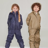 Zab is a pair of khaki coloured rain trousers in a soft, classic rubber quality. They have an interesting, contrast coloured inner face. Zab has elastic at the waist and ankles as well as stirrups at the feet and a reflector at the back on one leg to make the child extra visible in the dark. The rubber quality continues partially up the leg on the inside to keep the legs dry in rain. This product has a water-resistant, PFC-free surface treatment (Does not contain, e.g. PFOS, PFOA, etc). Water column pressure: 8.000 mm.