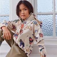 Zan is a rain jacket in a classic, soft rubber quality in a beautiful butterfly print. It has an interesting, contrast coloured inner face. Zan has a detachable hood, two front pockets, a reflector on the back of one sleeve to make the child more visible in the dark. This product has a water-resistant, PFC-free surface treatment (Does not contain, e.g. PFOS, PFOA, etc). Water column pressure: 8.000 mm.